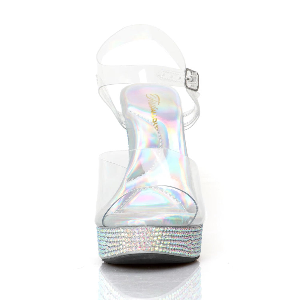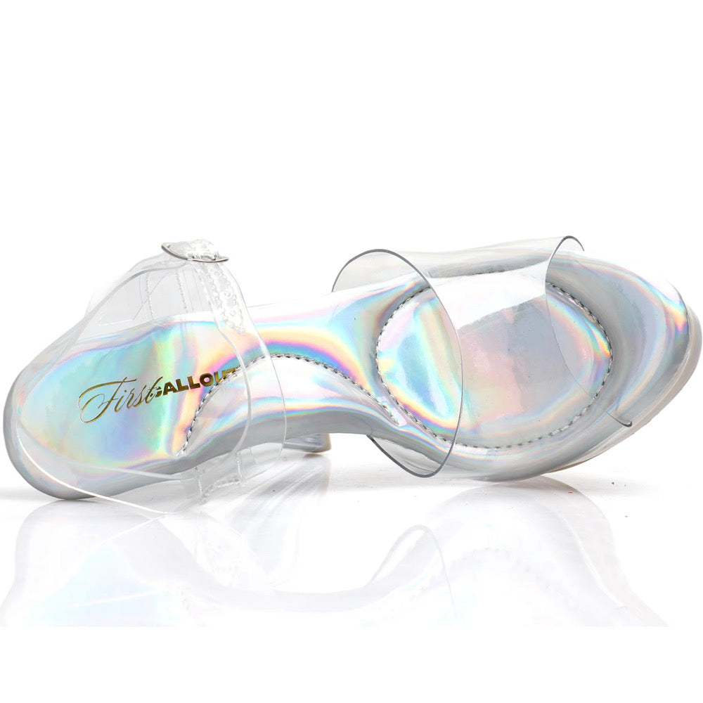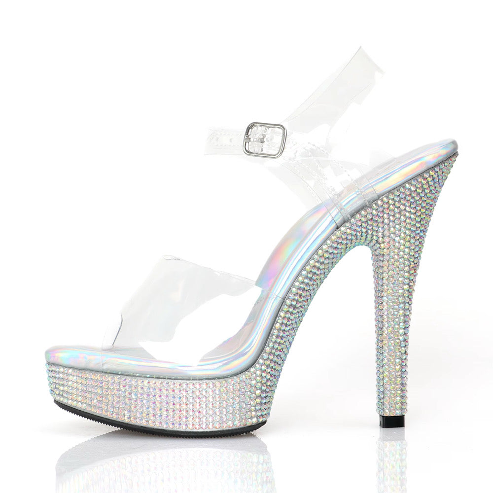With a 5-inch heel and 1-inch platform, these heels are covered in AB (colour reflecting) rhinestones from top to bottom for a flawless shimmer under stage lights. Available with or without ankle straps, they give you the choice between secure support or a sleek, strapless look. Either way, your legs will look longer and more sculpted than ever.